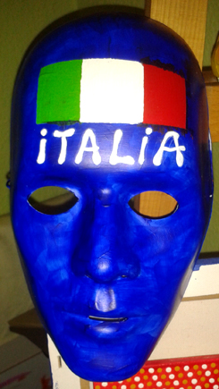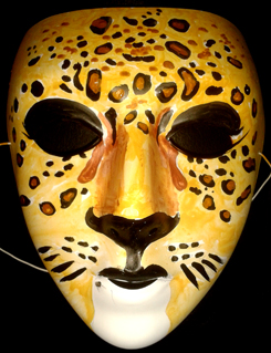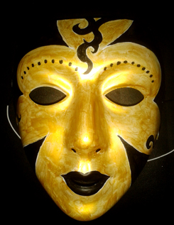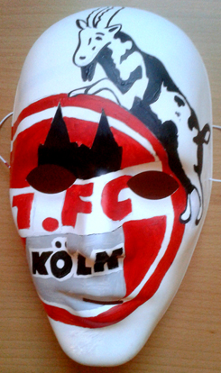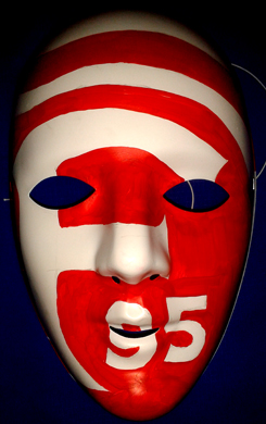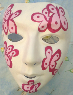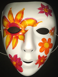 Weisse Neutralmasken wurden mit Acrylfarbe bemalt . | ||